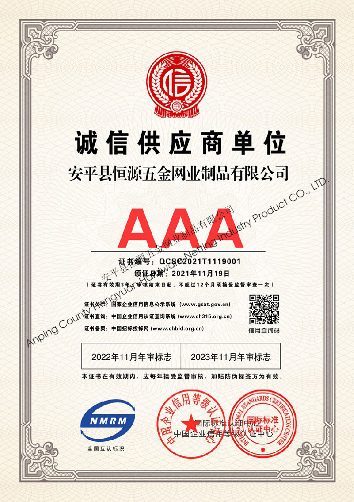 多年來(lái),安平縣恒源五金網(wǎng)業(yè)制品有限公司堅(jiān)持“科技興企、質(zhì)量立業(yè)”的經(jīng)營(yíng)理念和“誠(chéng)心為本、客戶至上”的合作宗旨,優(yōu)化生產(chǎn)工藝,打造優(yōu)質(zhì)產(chǎn)品,提供完善的服務(wù),受到國(guó)內(nèi)外客戶的一致好評(píng),產(chǎn)品行銷全國(guó)各地,并出口美國(guó)、德國(guó)、韓國(guó)、日本、臺(tái)灣等國(guó)家和地區(qū)。